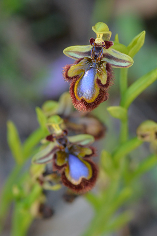 Les autres stations que nous avons visitées sont principalement situées entre Loulé et Santa Catarina da Fonte do Bispo, le long de la N270. Si certaines sont d'un accès aisé, d'autres sont parfois plus difficiles à explorer. On marche dans des zones de garrigue escarpée à travers buissons et broussailles mais c'est parfois le prix à payer pour voir le rare Ophrys algarvensis, un taxon décrit de cette région et qui s'apparente à Ophrys dyris. Ce dernier est également présent mais des pieds bien caractéristiques restent rares.